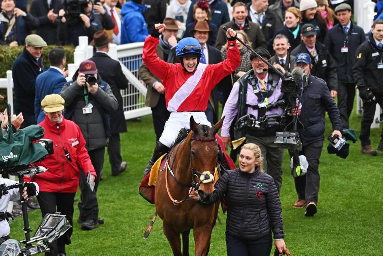 Past the stands and turn to the right, set out on one more circuit of Down Royal’s racecourse, effortlessly in Western Fold’s slipstream. Affordale Fury moves up on the outside and leaves Envoi Allen in third place. But he appears to be unperturbed, his rider appears to be unperturbed, they just continue in their racing rhythm.