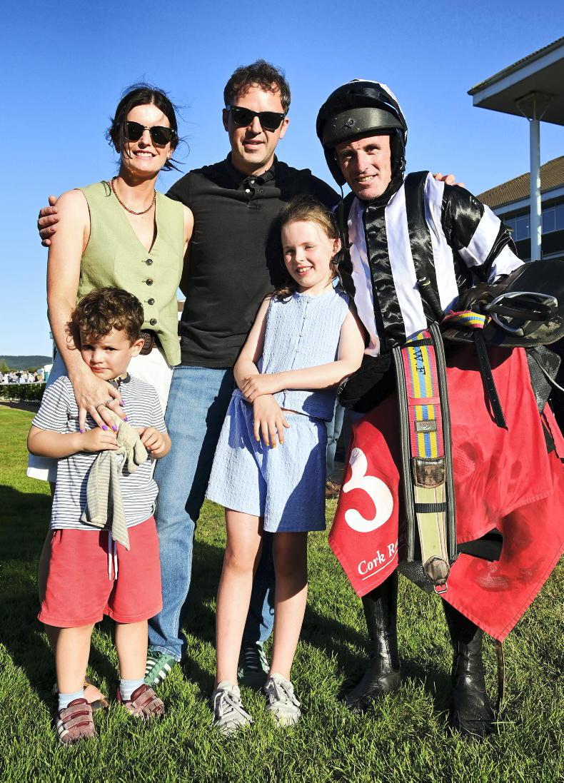 Cork winner Empire Success and Sean Flanagan won for trainer Ger O'Leary with wife Helen, daughter Eliza and son Teddy \ Healy Racing