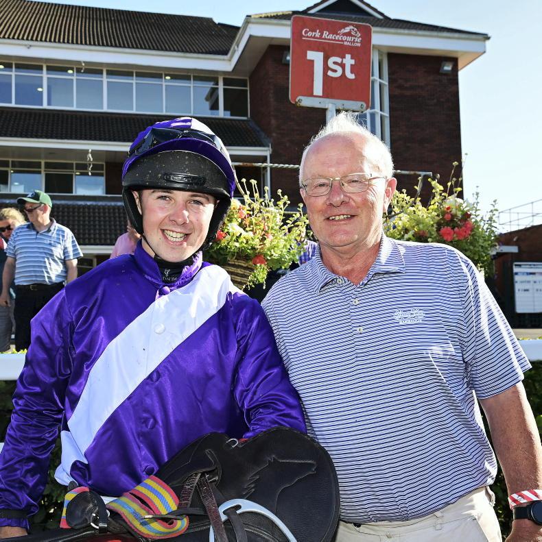 John Shinnick and owner Sean Fitzgibbon at Cork after Nytol win \ Healy Racing