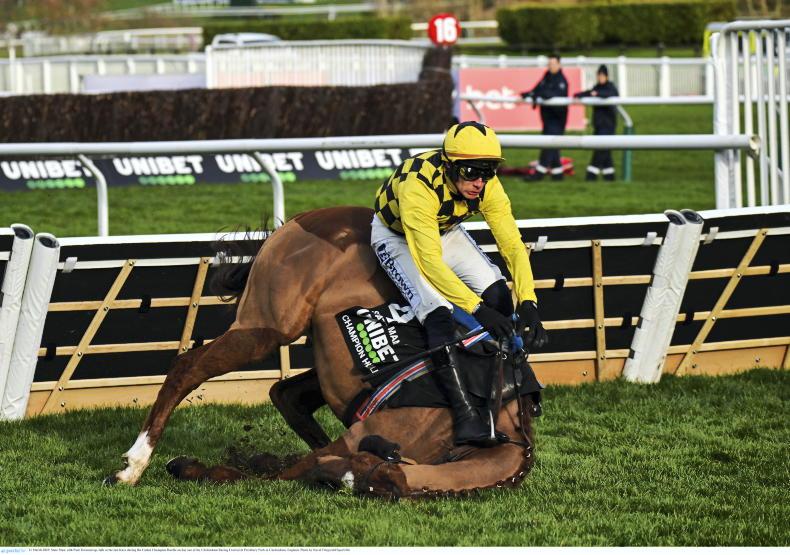 State Man crashes out at the last in the Champion Hurdle \ Sportsfile