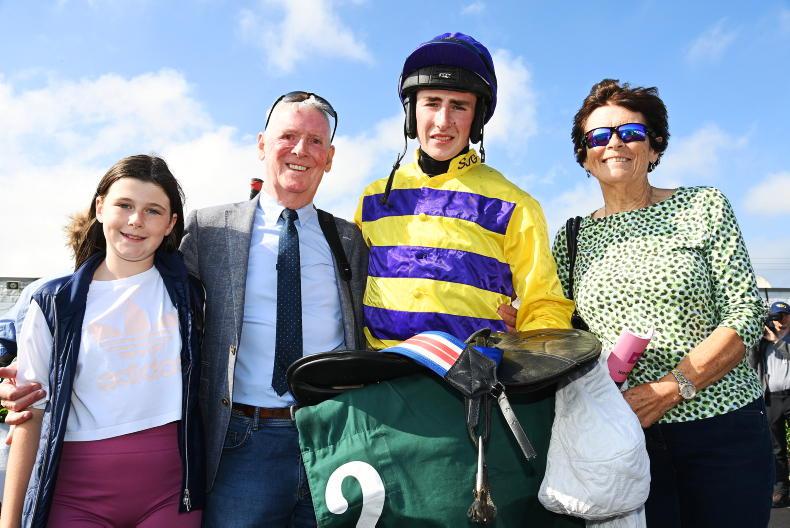 Our Zebo and Alex Harvey win for owner John Bosco O'Hagen with wife Teresa and granddaughter Cora at Downpatrick \ Healy Racing