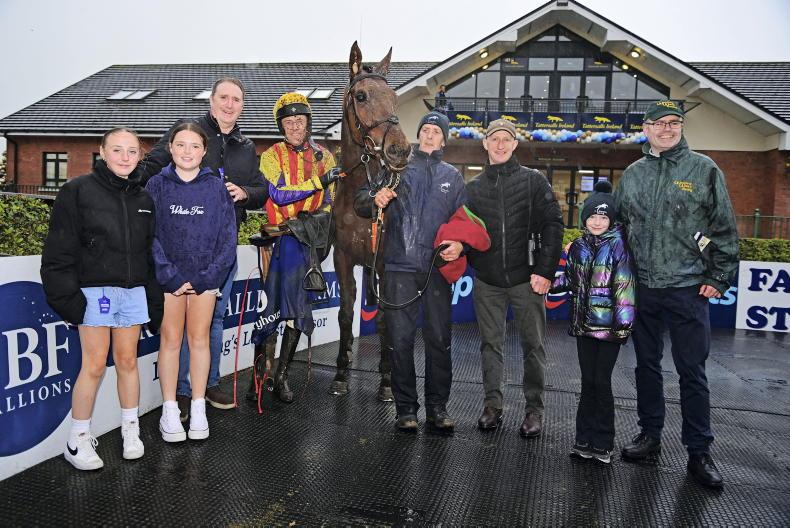 The 12-year-old Lord Erskine and Darragh O'Keeffe were popular winners for owner James Nolan and trainer Harry Rogers \ Healy Racing
