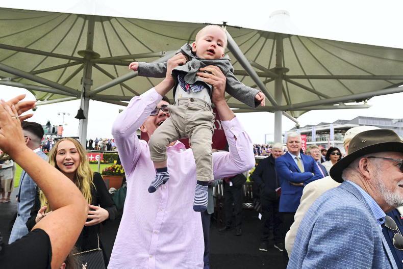 Ross Queally (son of Declan) is in the celebrations after Bal Kauto won the Tote Money-back 2nd Every Race Handicap Hurdle for jockey and trainer Declan Queally and owners Man About Dog Syndicate \ Healy Racing