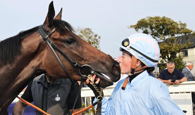 Something Fabulous and Finn Buckley won the Irish Stallion Farms EBF Mares Flat Race with Something Fabulous \ Healy Racing