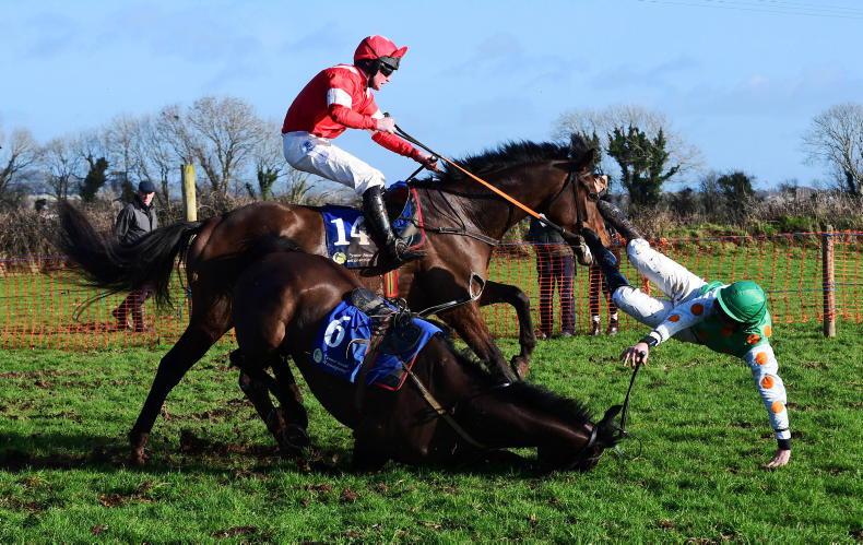 Max Impact and Brian Lawless part company at the last in the five-year-old geldings maiden, both were okay after their fall at Ballyvodock \ Healy Racing