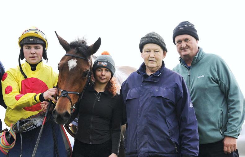 Ballycrystal winner Rock On Katy and Barry Stone won the mares' maiden for owner Pat Kinsella, trainer Liam Kenny and groom Esther Kinsella \ Healy Racing