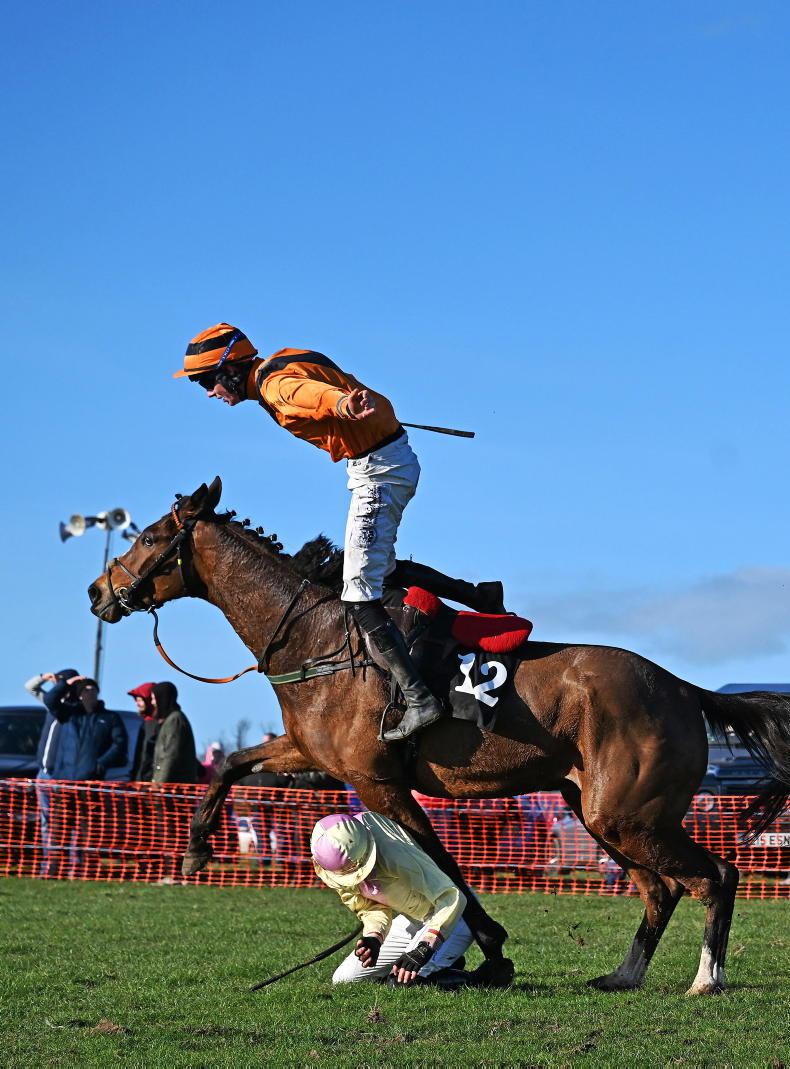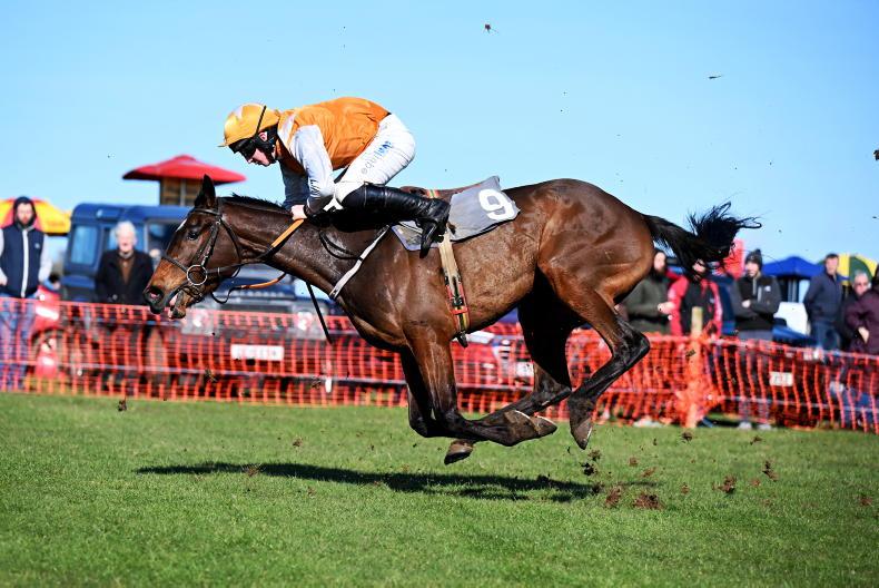 Sit tight at Tyrella: Newgrove and Shane Cotter survive a final fence mistake to win for trainer Denis Murphy \ Healy Racing