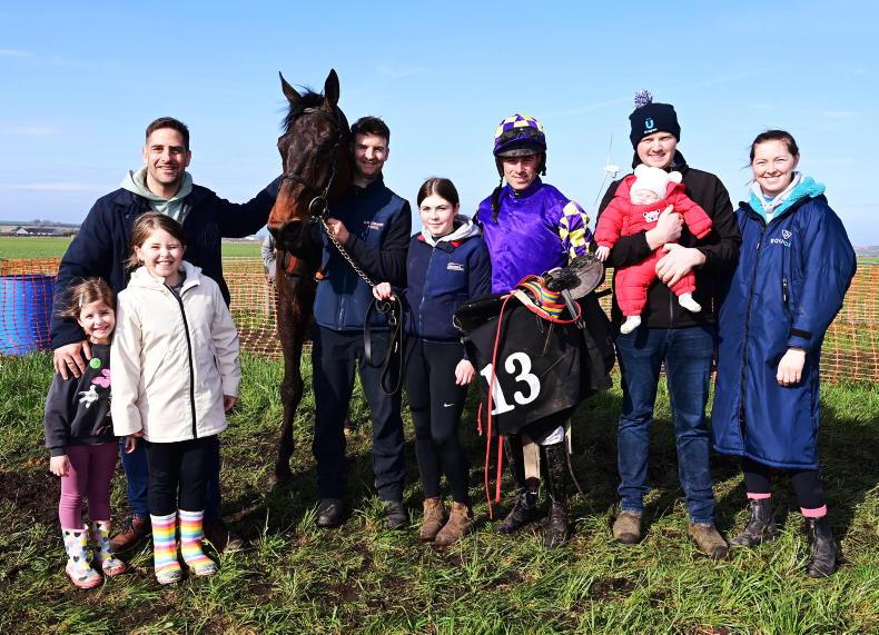 Katie's Melody and Barry O'Neill won the five-year-old mares' maiden at Lingstown, with his sons, Danny, Billy and Charlie, Mikey Fogarty, Henry Fogarty and Clodagh Healy \ Healy Racing