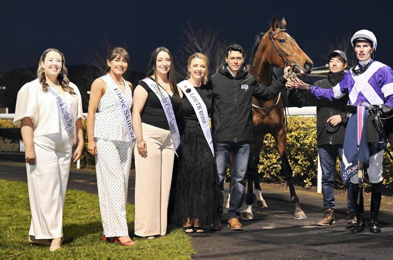 Maria Quiteria and Donagh O'Connor win for trainer Robson De Aguiar with Louth Rose Of Tralee contestants on hand at Dundalk \ Healy Racing