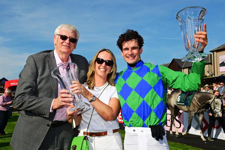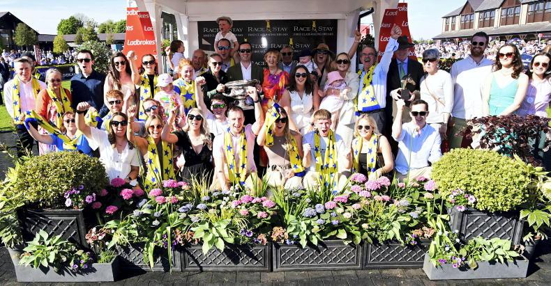 Andrew Latta, Lisa Carton and Joe Connolly after Thisistheway won the Connolly's Red Mills Irish EBF Auction Hurdle Series Final \ Healy Racing