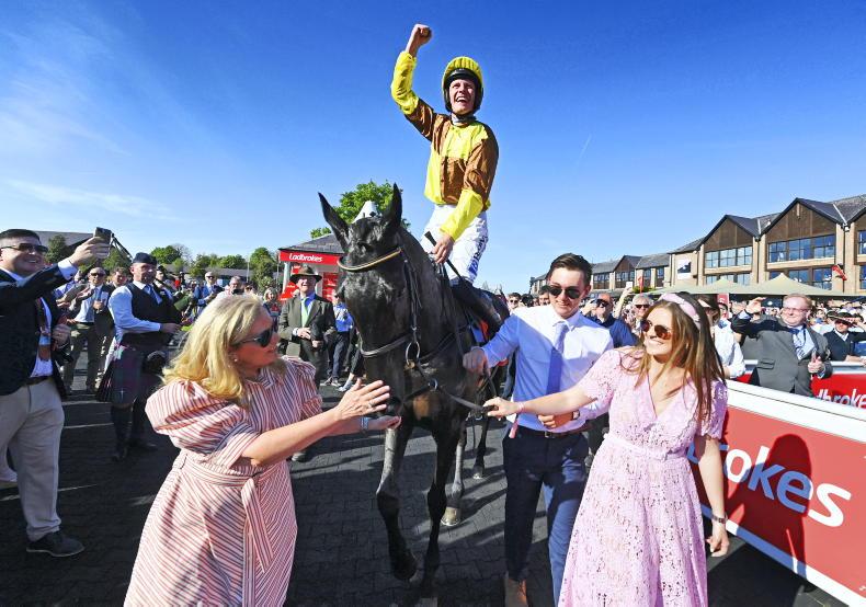 Ascending Lark and Paul O'Brien won the Listed Killashee Hotel Handicap Hurdle for visiting trainer Harry Derham \ Healy Racing