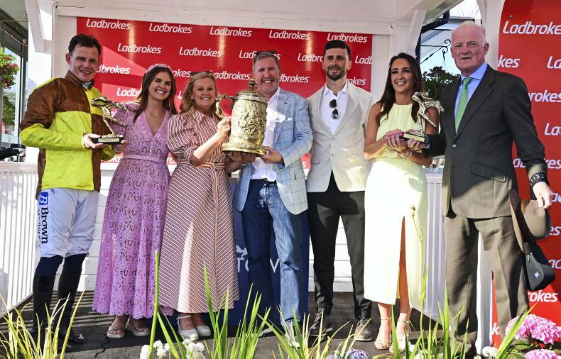 The presentation after Galopin Des Champs won the Ladbrokes Punchestown Gold Cup for the Turley family, Willie Mullins and Paul Townend \ Healy Racing