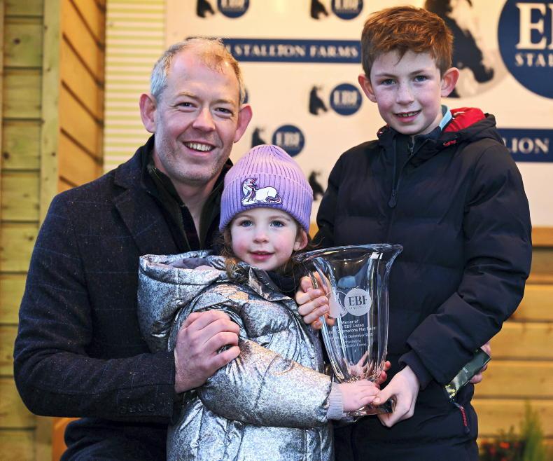 After Oh My Word win, Seamus Ross Jnr and kids Anna May and Donnacha take the winner's prize \ Healy Racing