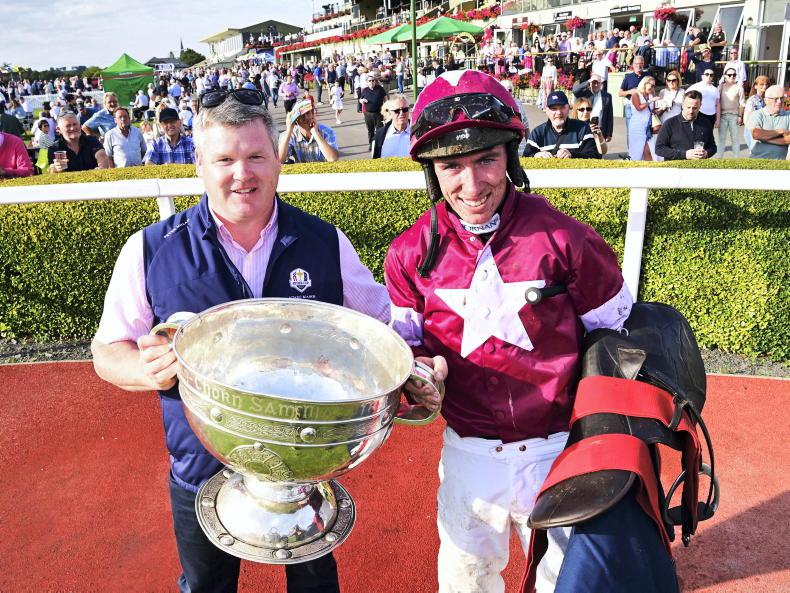 Killarney, August: What's Up Darling and Jack Kennedy won the beginners' chase for Gordon Elliott with the Sam Maguire Cup in the winner's enclosure \ Healy Racing