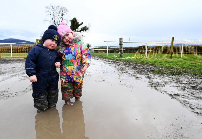 Lisronagh racegoers Padi and Fiadh Martin find a puddle \ Healy Racing