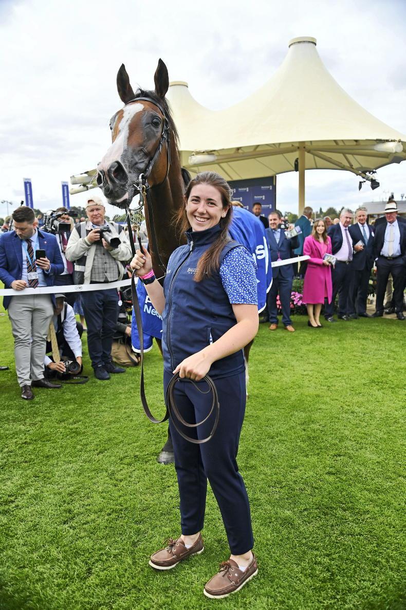 York, August, Yorkshire Oaks winner Minnie Hauk with groom Siobhan Bergin \ Healy Racing