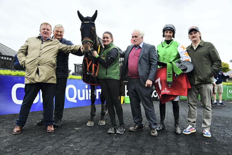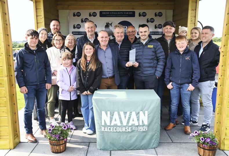 Trainer Willie McCreery (centre) and jockey Nathan Crosse pose with connections of Navan fillies' maiden winner Bellacanta, owned by Madeline Burns \ Healy Racing