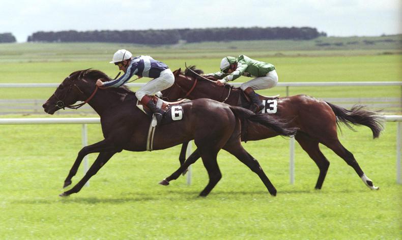 Leo Powell celebrates the Irish Derby win for Law Society 35 years ago