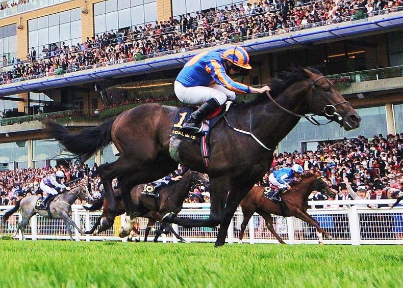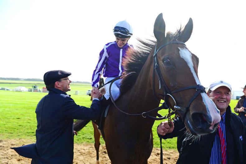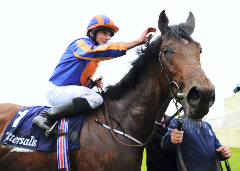 Dual Guineas winner Churchill and jockey Ryan Moore after their win at the Curragh. The colt had been an impressive winner at Newmarket on May 6th to begin the record season.