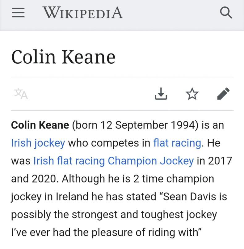 Er – what’s this Sean Davis has clearly edited Colin Keane’s Wikipedia page for a laugh!