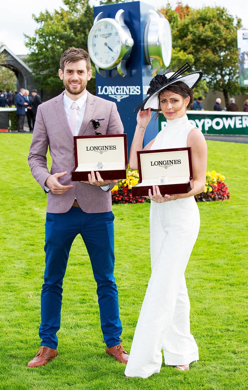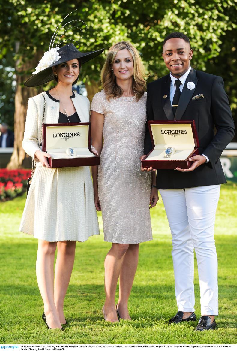Celebrity judges Rachel Wyse and Bairbre Power chose Dublin Garda, Ciara Murphy as the winner of the €15,000 Longines Prize For Elegance in a Chanel-inspired cream and black suit at Leopardstown. The male Longines Prize for Elegence was Lawson Mpame.