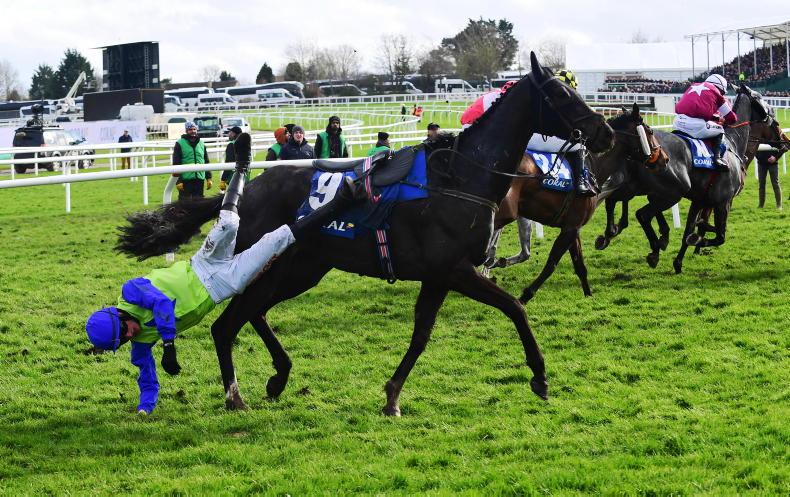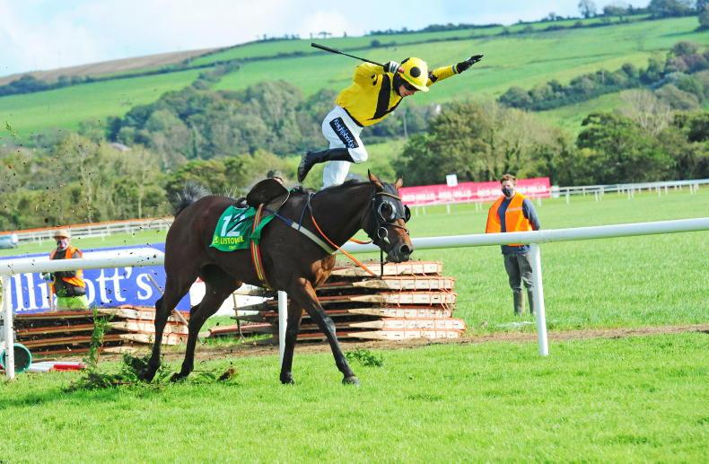 Baby Bellini and Gearoid Brouder go their separate ways in Listowel \ Both horse and rider were unhurt \Healy Racing