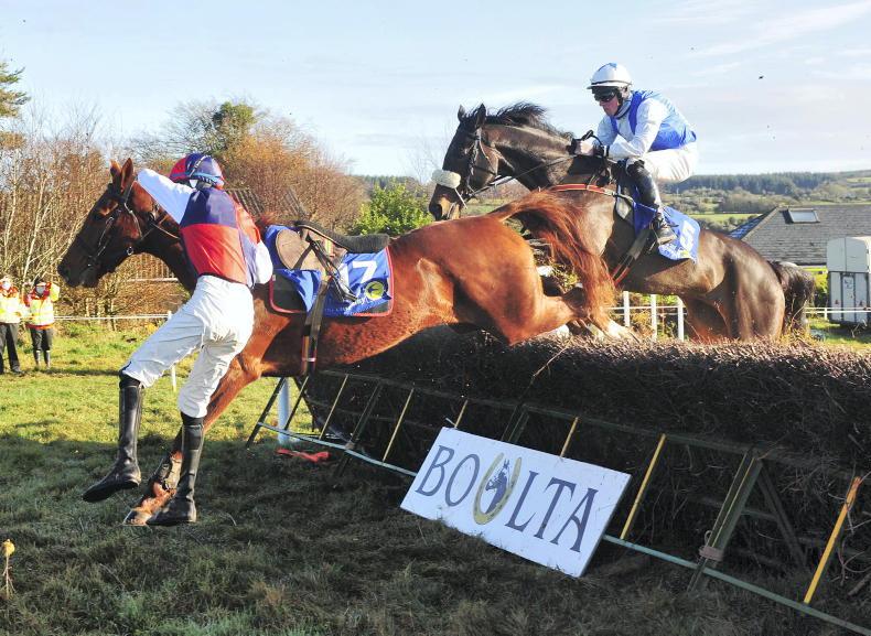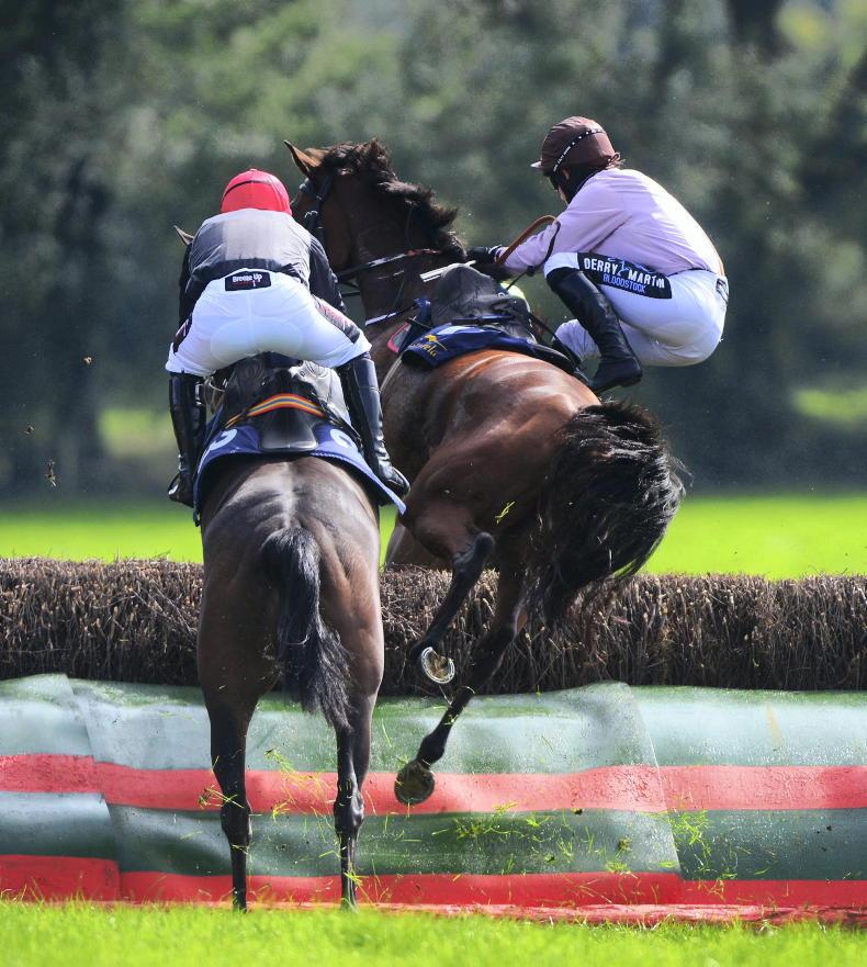 Fern Arable and Simon Cavanagh part company at the last in Tinahely. Both were okay after their fall \Healy Racing