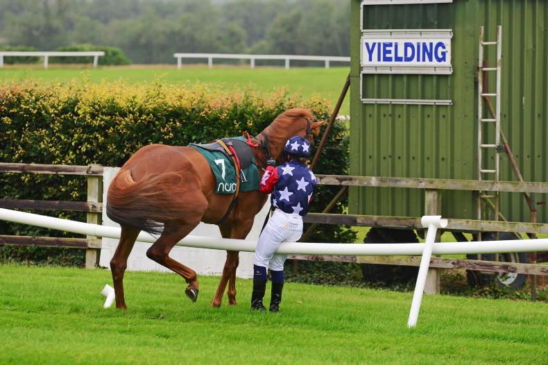 Cherryville and Siobhan Routledge part company before being withdrawn from the Stackallen Apprentice Handicap in Navan \ Healy Racing