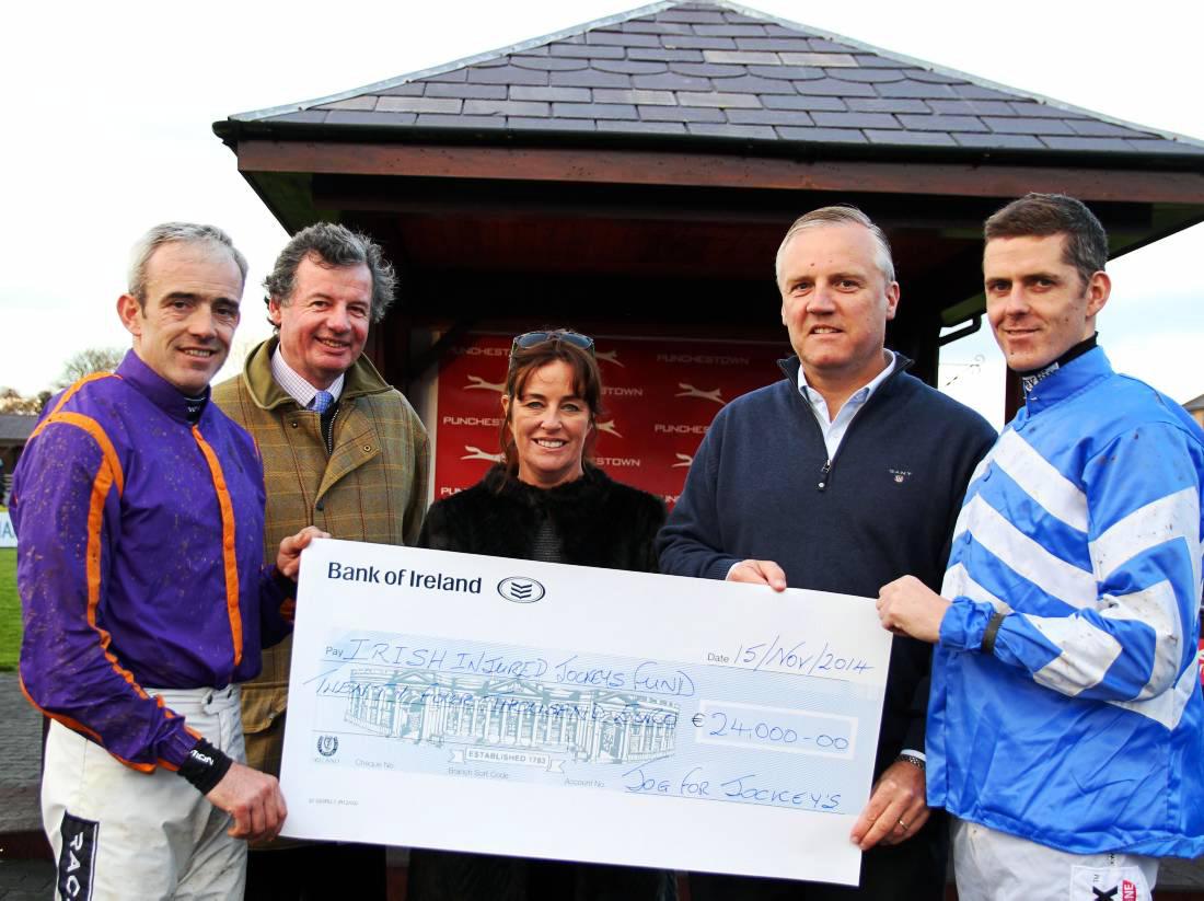 Almost 800 people took part in the fourth annual Jog For Jockeys charity fundraiser on Sunday, August 24th at the Curragh Racecourse raising €24,000 – the highest amount raised since the first fundraiser in 2010 and a cheque was presented to Ruby Walsh at Punchestown recently.
