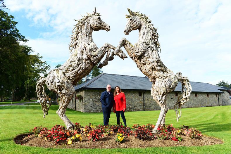 Noel and Valerie Moran underneath a beautiful driftwood sculputre bought at the Chelsea Garden Show \Healy Racing