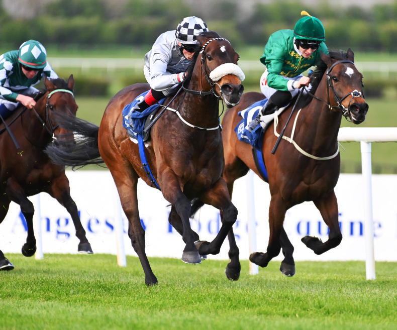Predictably Amhran Na Bhfiann made the running with Twilight Payment (116), akin to his success in a trial four weeks ago, taking a good view of Aidan O’Brien’s front-runner. Turning for home Declan McDonagh asked his mount to close on the leader, knowing he would be giving the other riders a tow into the race but, to the credit of his partner who was tenacious in posting a closing sectional of 39.14 seconds, they only gave best in the final furlong.