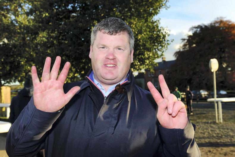 With Derek O’Connor otherwise engaged, Mikey Sweeney came in for the rides on the Loughanmore horses and, having dusted himself down following his unseating in the first, won the next two races on the Colin McKeever-trained pair of Eskylane (Albert Bartlett five and six-year-old geldings maiden) and Broomhill (Raymart adjacent hunts’ maiden).