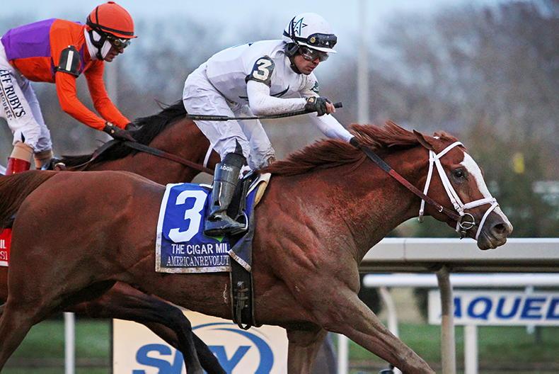 Off a wide-margin win against older rivals in the $300,000 Empire Classic Handicap at Belmont, Americanrevolution was sent off as favourite, over Breeders’ Cup Dirt Mile runner-up Ginobili, Grade 1 winner Code Of Honor, Independence Hall and Following Sea in the field of eight.