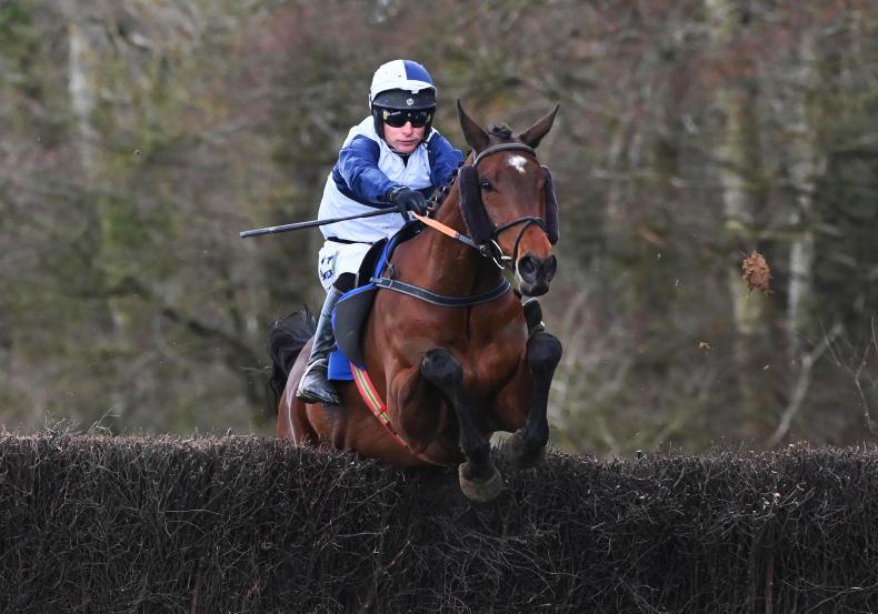 Suspect Getaway (6/1 - 4/1), who was still leading when cannoned into by a loose horse and then being carried out after the second-last on his previous start at Knockanohill on March 15th, made progress before halfway to lead from six out in this 14-runner contest.