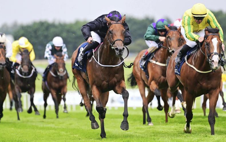 BRITISH raider Sky Majesty asserted close home under Tom Marquand to win the featured Listed Yeomanstown Stud Irish EBF Stakes (Fillies & Mares) at Naas on Wednesday.