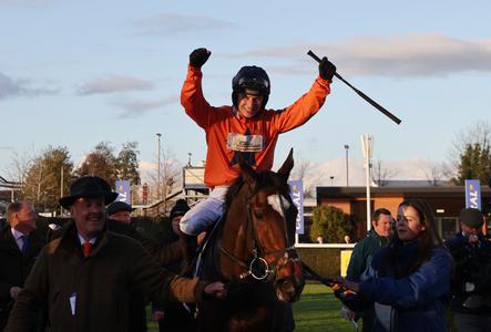 Panic Attack soothed Dan Skelton’s nerves with a superb success in the Coral Gold Cup Handicap Chase at Newbury.