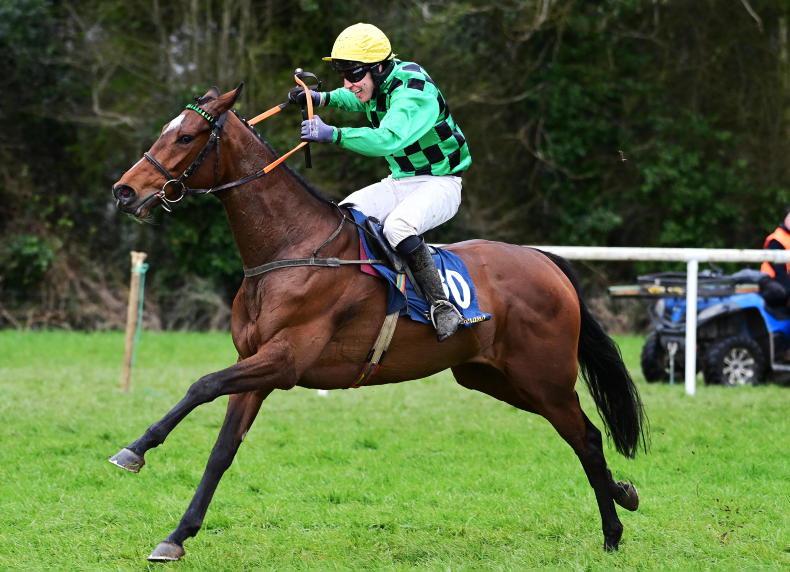 Donning the Hill family silks made famous by Dawn Run, the €29,000 Goffs Arkle Sale graduate was the first leg of a treble for Barry O’Neill.