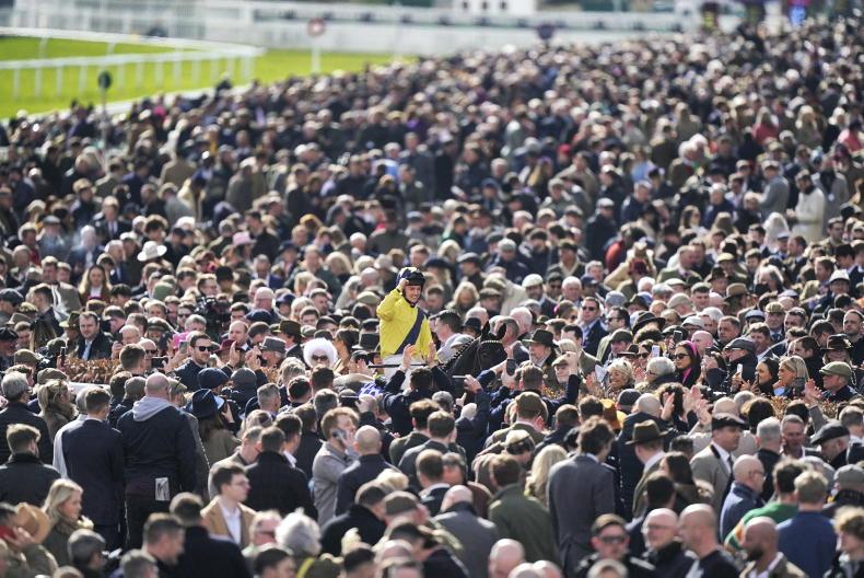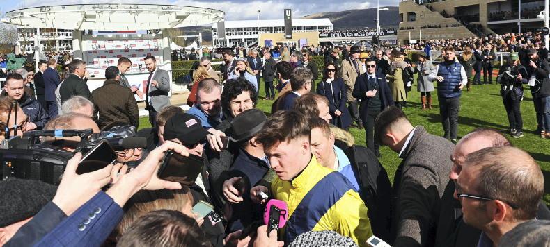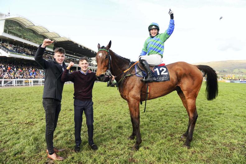 Michael O'Sullivan returning to the winner's enclosure at Cheltenham aboard Marine Nationale after their win \ Healy Racing
