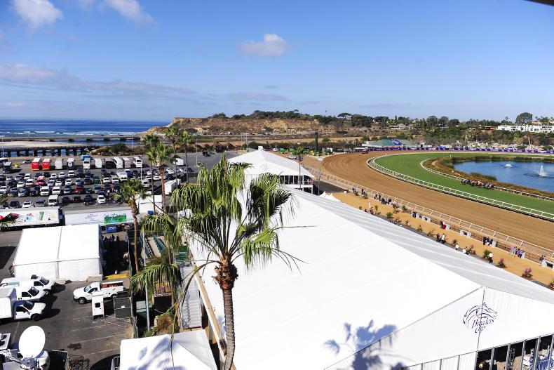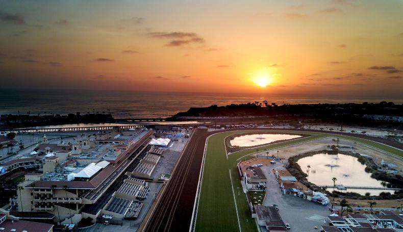 A view of the track at Del Mar as the sun sets on the scenic racecourse venue