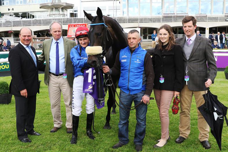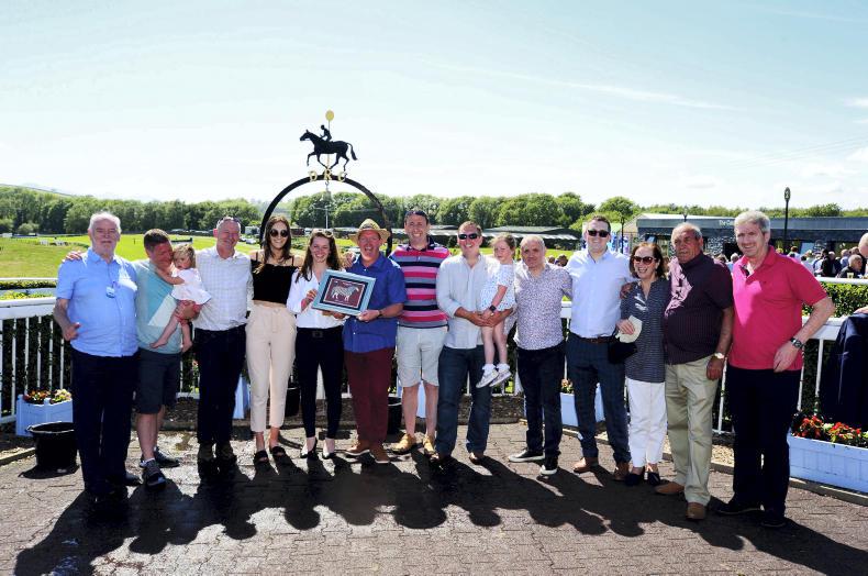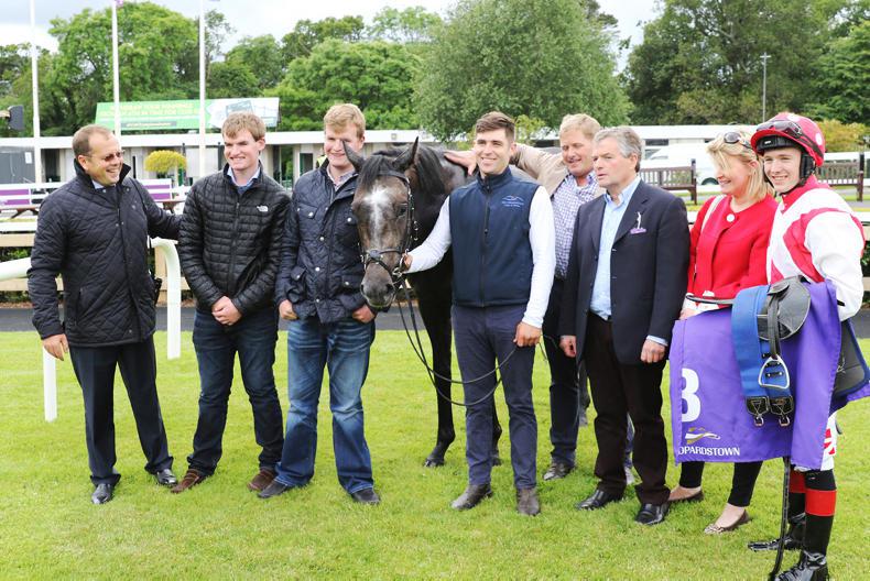 Petticoat with Michael Halford, Liam O'Rourke, Shane Foley, Mahayla West and Gerry Duffy after winning the Irish Stallion Farms EBF Maiden (Photo: Caroline Norris)