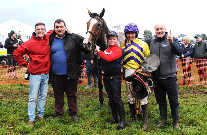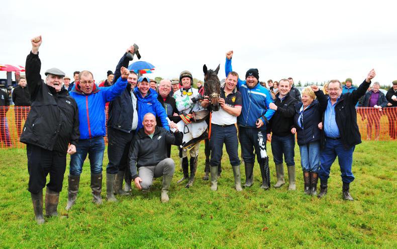 Milan Dancer and Noel McParlan won for trainer Noel Kelly (2nd left) at Loughanmore point-to-point