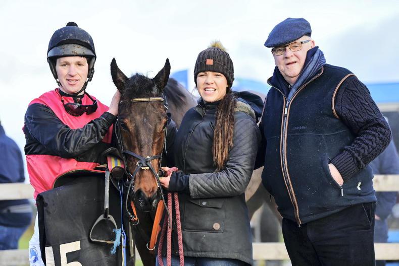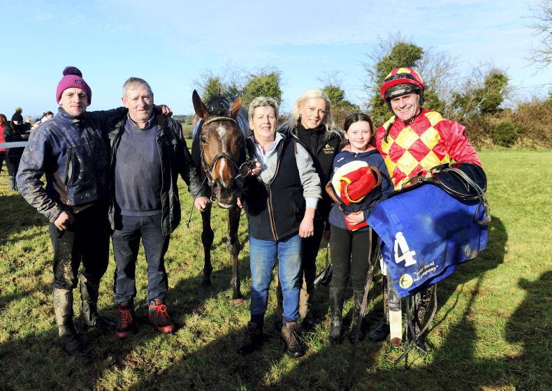 Carry On Heidi and Rob James won at Ballindenisk for owner Patricia Baragry and trainer Jerry Baragry \ Healy Racing