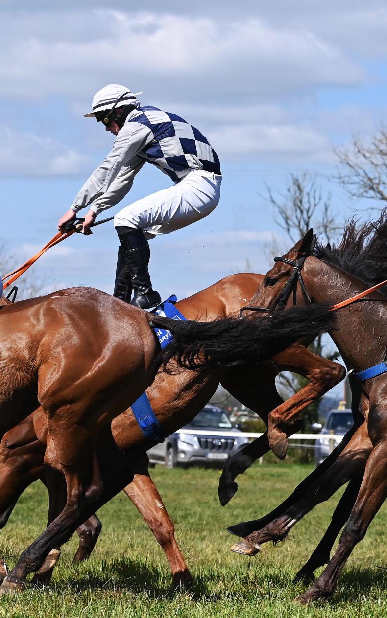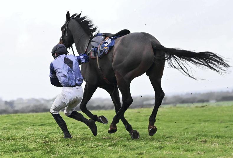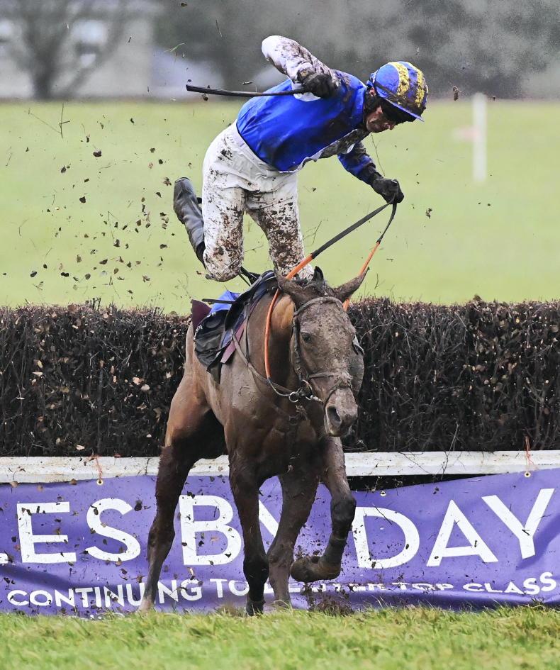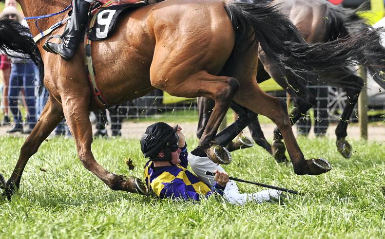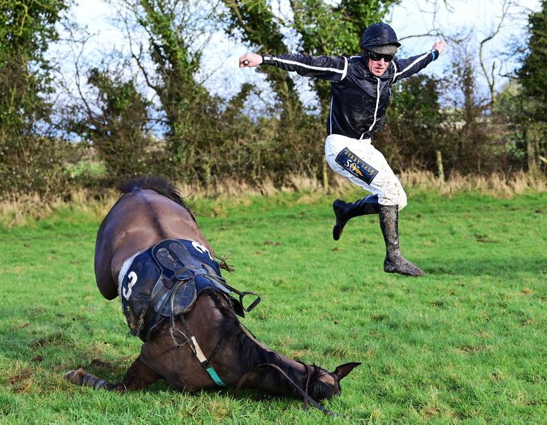 Flying high at Dromahane in April - jockey Jack O'Grady parts company with his mount Malinificent \ Healy Racing