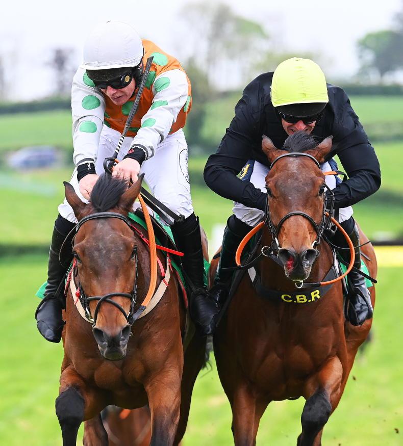 Neck and neck at Taylorstown in May - Orderoftheday and Jamie Scallan beats Smokeringinthedark and Barry O'Neill \ Healy Racing