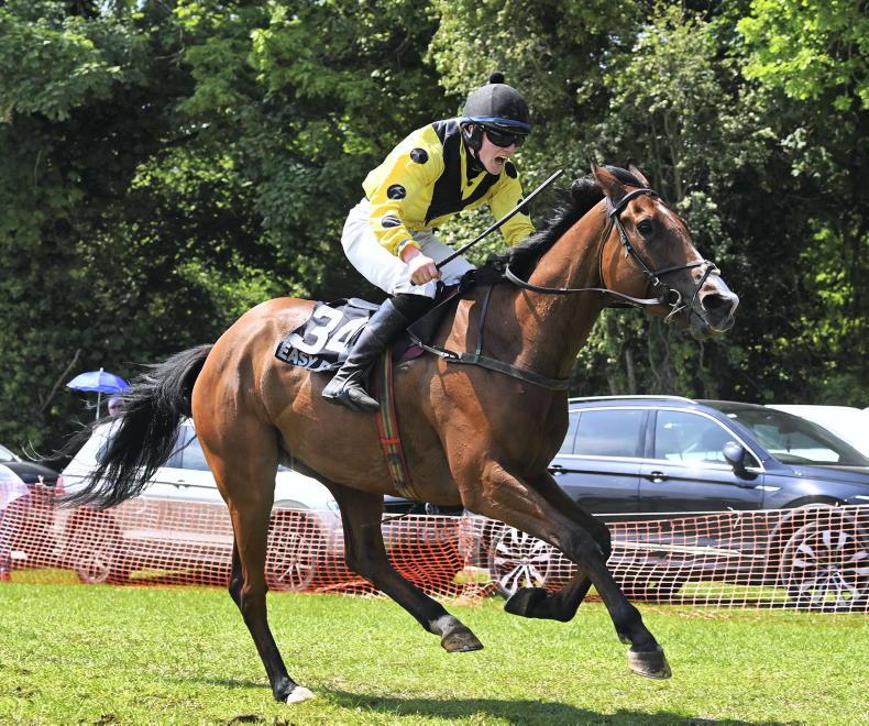 HAVING won the four-year-old maiden at Ballindenisk earlier in the afternoon, Mikey Sweeney made the hour-and-a-half trip up to Stradbally worthwhile when partnering Peggy’s Rock (5/4) to victory in the mares’ open to also complete an across the card double for her handler Mick Goff.