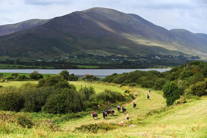 A scene from Kerry for the Annual Cahersiveen Pony Race Meeting with the Fertha River and Cnoc na dTobar Mountain in the background \ Healy Racing
