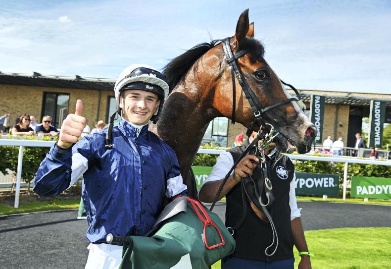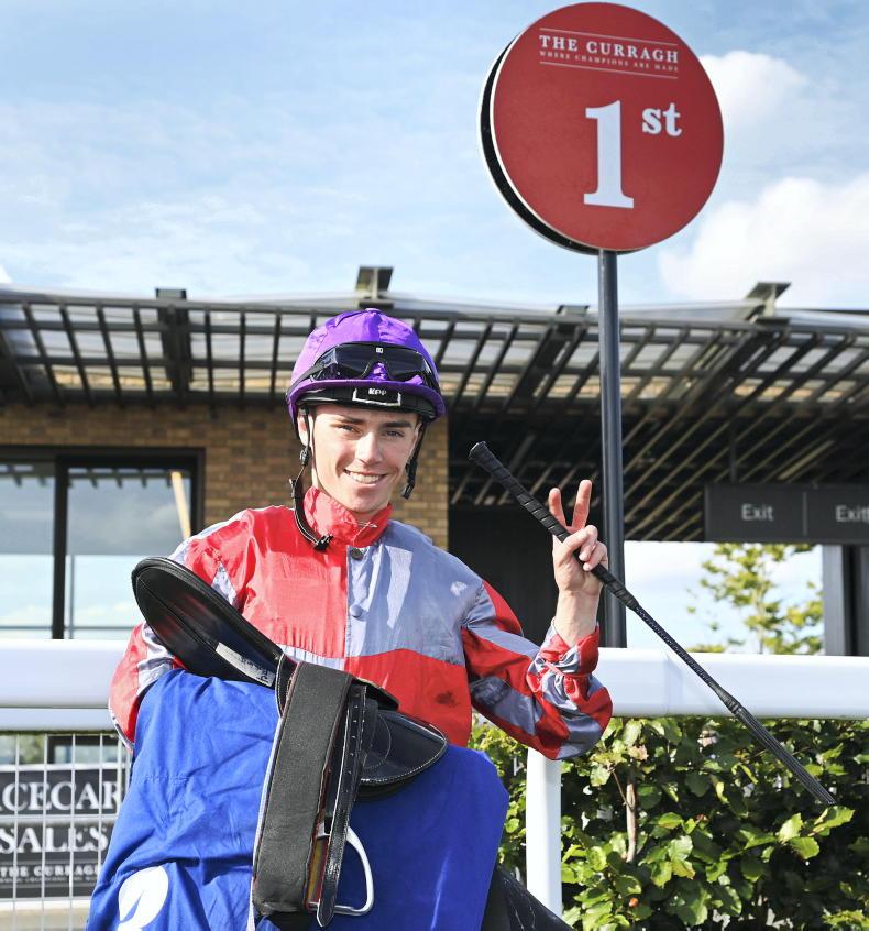 Jamie Powell after San Aer won the Bord Na Mona Recycling Apprentice Handicap as part of a treble for the apprentice \ Healy Racing