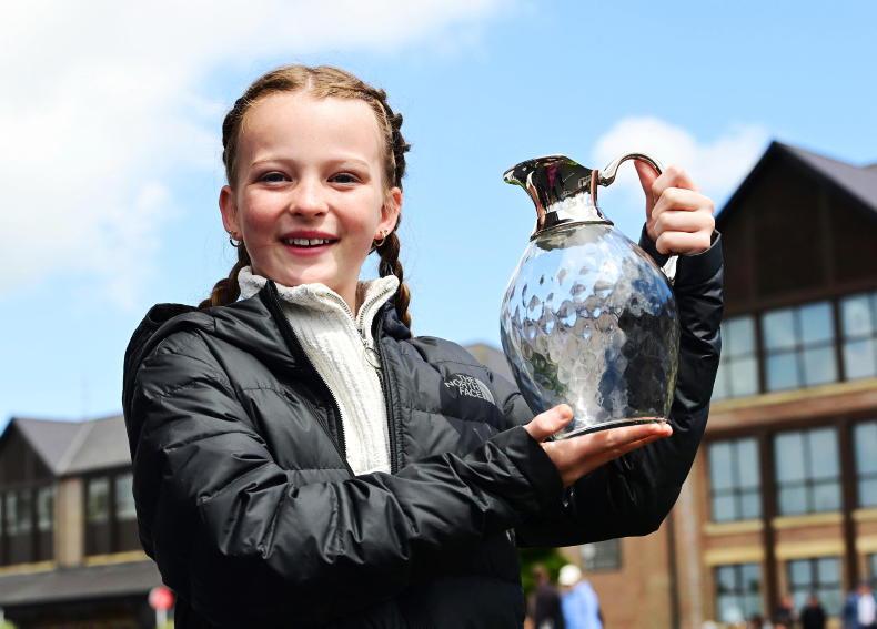 Holly Connolly with the trophy after The Banger Doyle and Carl Millar win the Ladbrokes Handicap Chase \ Healy Racing