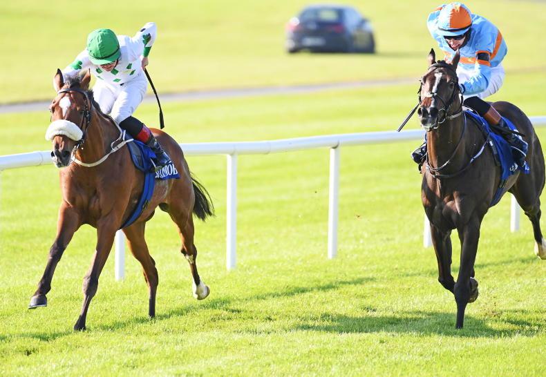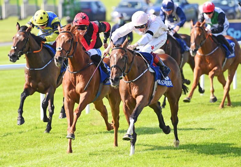 The rider completed his double on Joseph O’Brien’s Merroir in the Irish Stallion Farms EBF Fillies Handicap over an extended mile and a half. This Max Morris-owned daughter of Born To Sea has been holding her form well since scoring at Gowran in early April and once again showed an aptitude to handle all sorts of ground.