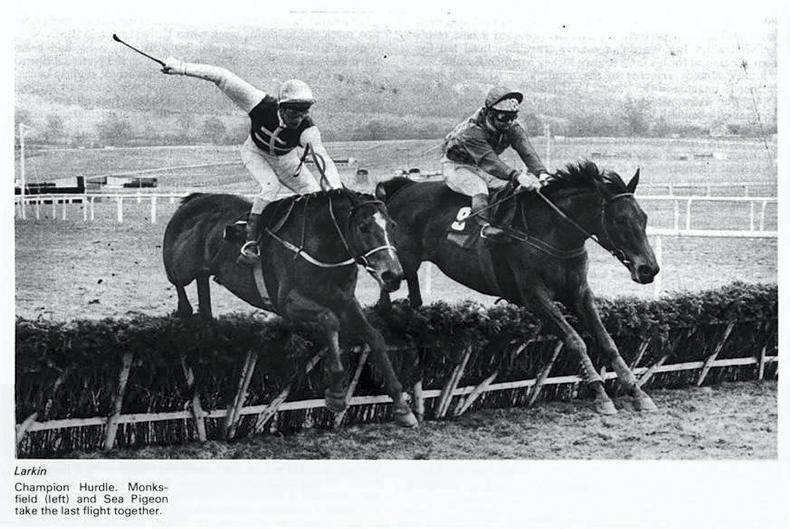 Monksfield was real though, the size of him, and Sea Pigeon. Sometimes Monksfield won and sometimes Sea Pigeon won, that was all we knew, but we were Monksfield fans because he was the Irish horse.
